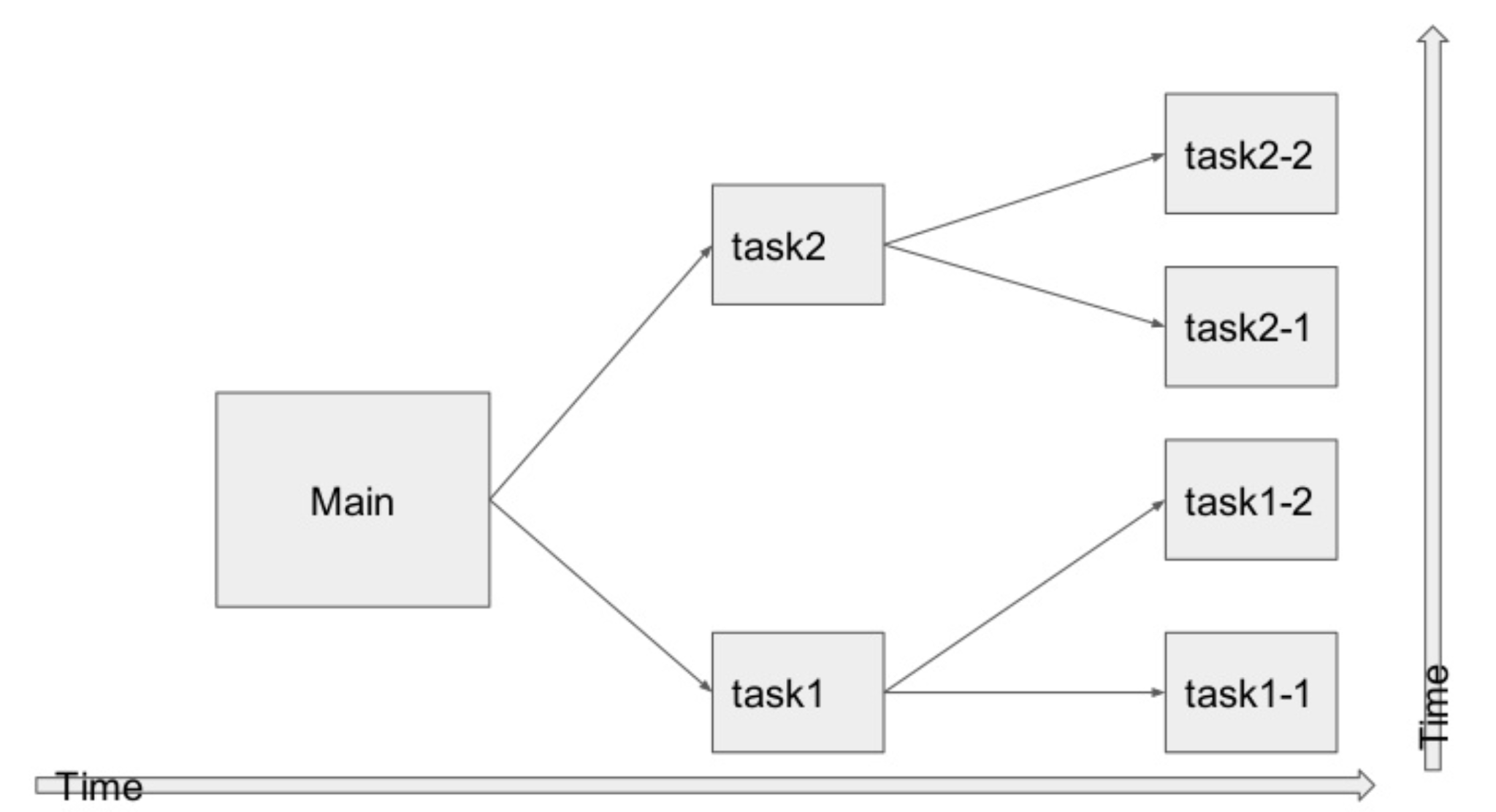 使用了 ForkJoinPool 就可以透過 task 的 fork 與 join 讓 task 變成樹狀結構.