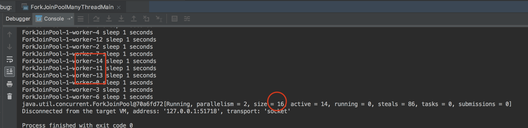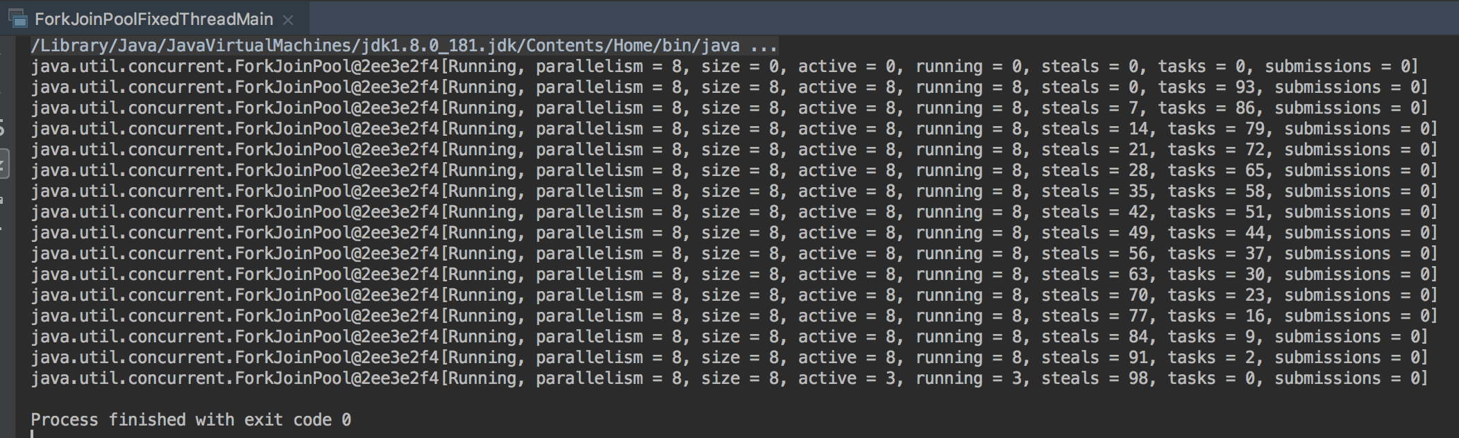 因為呼叫 new ForkJoinPool() 所以 pool size 最多就維持在 8 (我的電腦有 8 core)