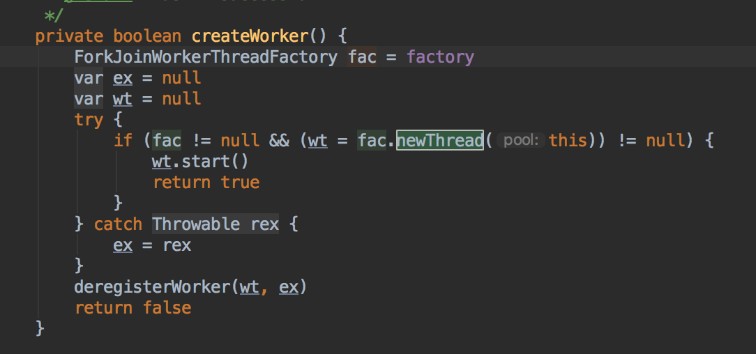 這個做法的確可以控制建立的 thread 數量 , 不過回傳 null 對 ForkJoinPool 來說是一個錯誤, 以 ForkJoinPool 的規則來說這個時候是要 createWorker 的, 不應該出現錯誤而回傳 null.