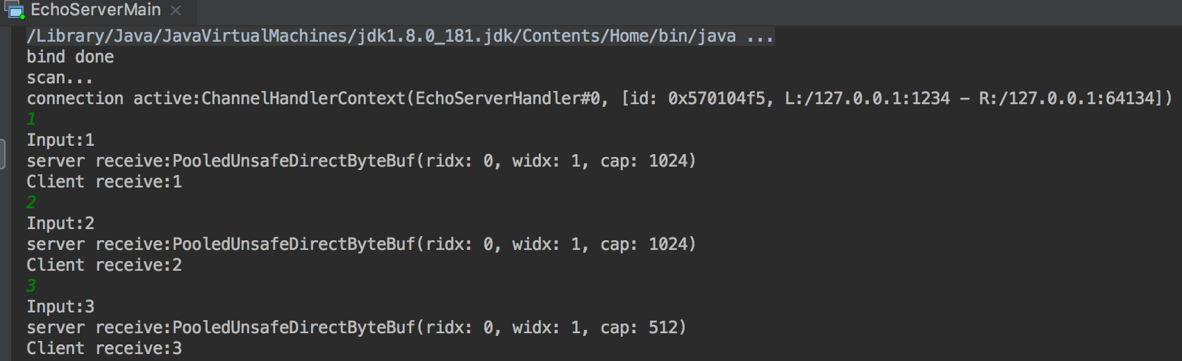 Netty Example - server echo user input message
