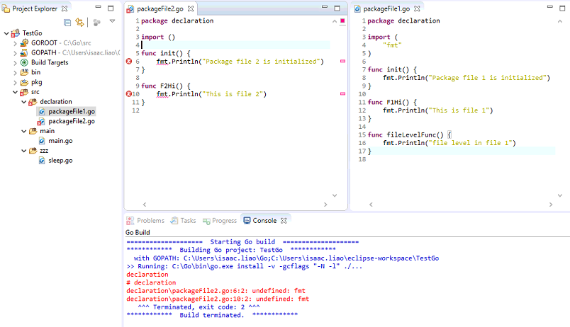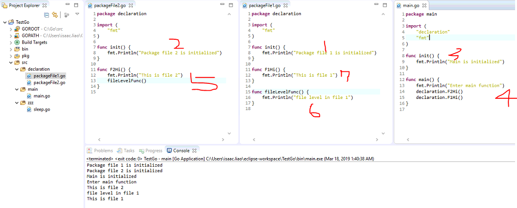 (Ex. "fmt" is imported in packageFile1.go, packageFile2.go can not use "fmt", need import by itself)