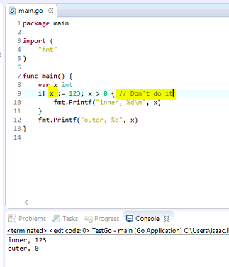 Avoid declare := in a separate var declaration In order to prevent potential problem.