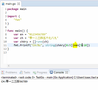 - substring, format: string[startIdx:endIdx], need to be reminded you need cast to rune if string contains