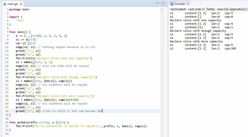 Ex, Use built-in function copy to copy elements from one slice to another