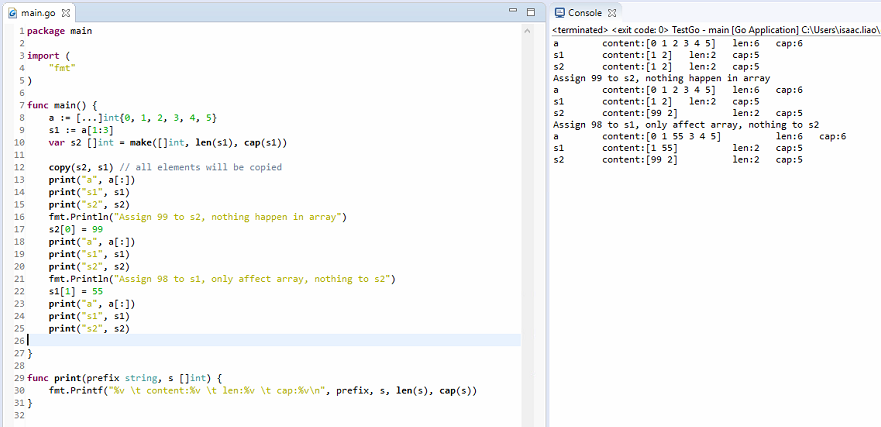 Copied slice refer to the same array? What will happen when we modify value from copied slice?