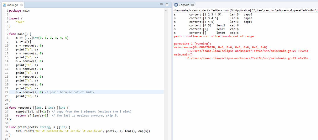 It seems underlying array won't be removed when we just remove from slice, need to be careful of this part.
