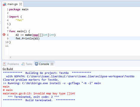 Key type must be comparable using ==, array can be used as a key to declare a map, but slice is not acceptable.
