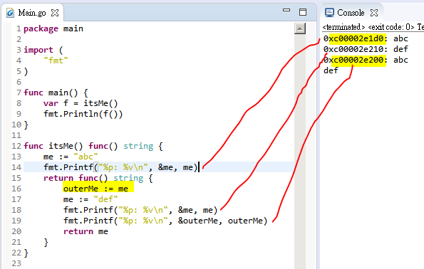- Ex. When inner function got the variable, address is the same