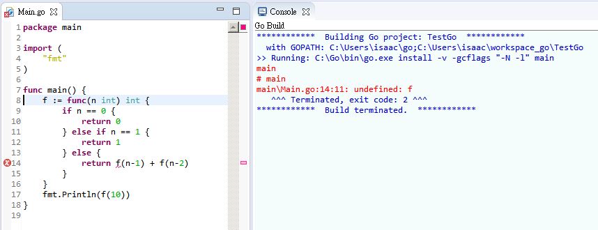 - Must declare a func before let func call itself recursively. Otherwise compile error