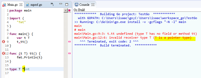 Pointer type can't be declared as method receiver.