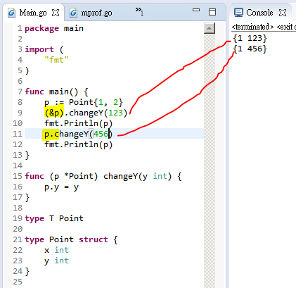 When a receiver is declared as a pointer, client code should use & to call method.