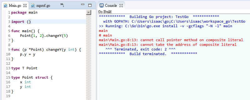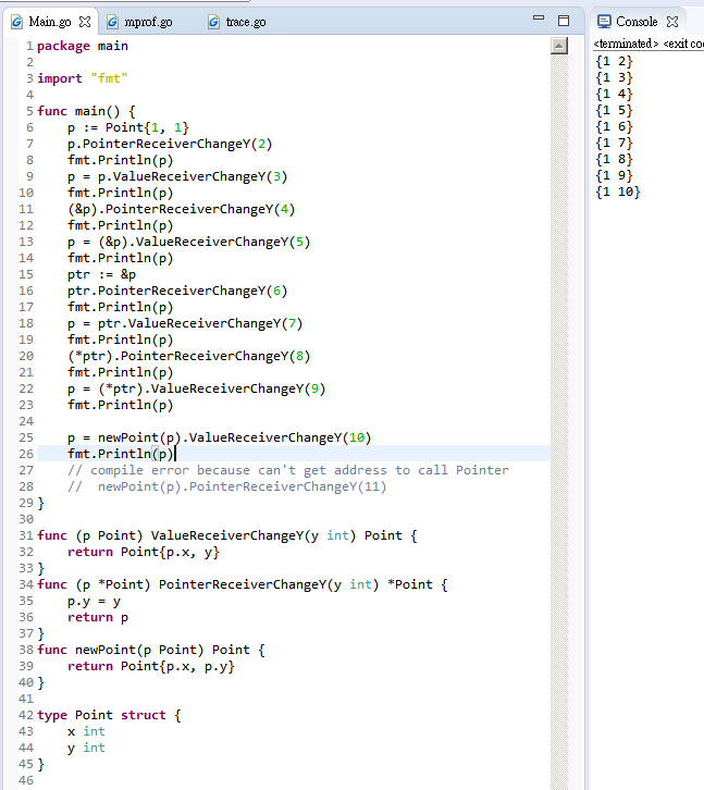Can not call method in *Point because no address if temp value. Ex. Point{}.add(2)//compile error