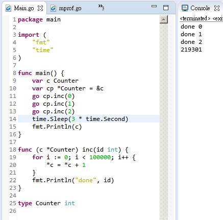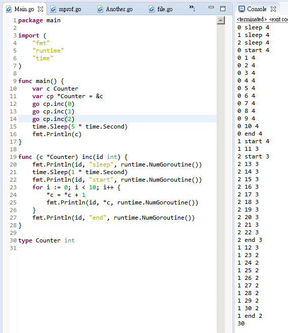 Go - goroutine Run f() in another goroutine: go f() To produce a race condition issue, can make for loop larger Share on X Facebook LinkedIn Bluesky Previous Next