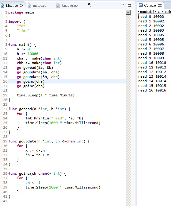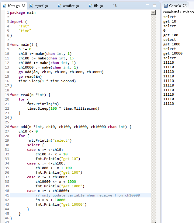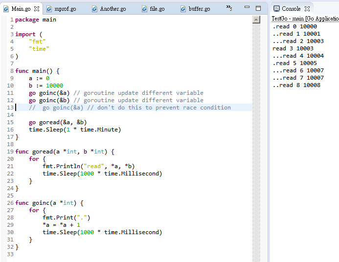 - Avoid modifying variables by multiple goroutine => Every goroutine take care of different variable modification.