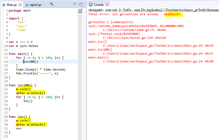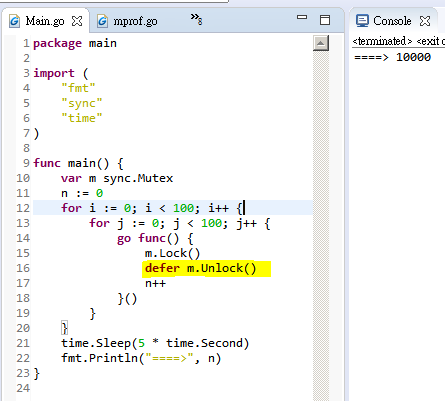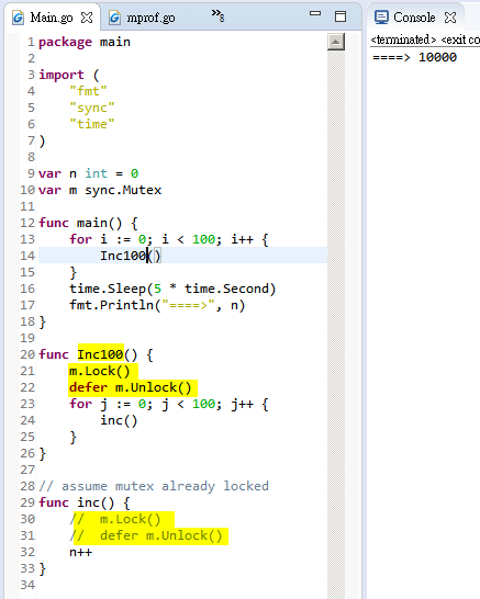 - Every Lock needs Unlock, can use defer to prevent missing Unlock