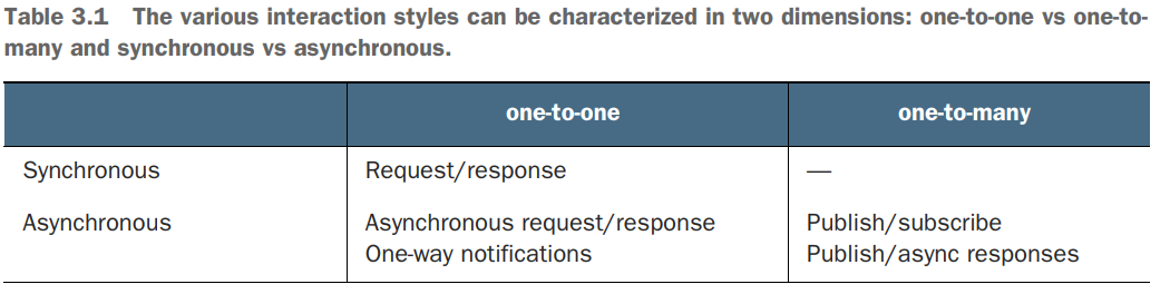 Microservice Patterns - 3.1 Interprocess communication in a microservice architecture - Overview of interprocess communication in a microservice architecture