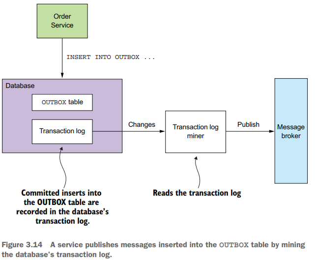 Pattern: Transaction log tailing Publish changes made to the database by tailing the transaction log. See http://microservices.io/patterns/data/transaction-log-tailing.html.