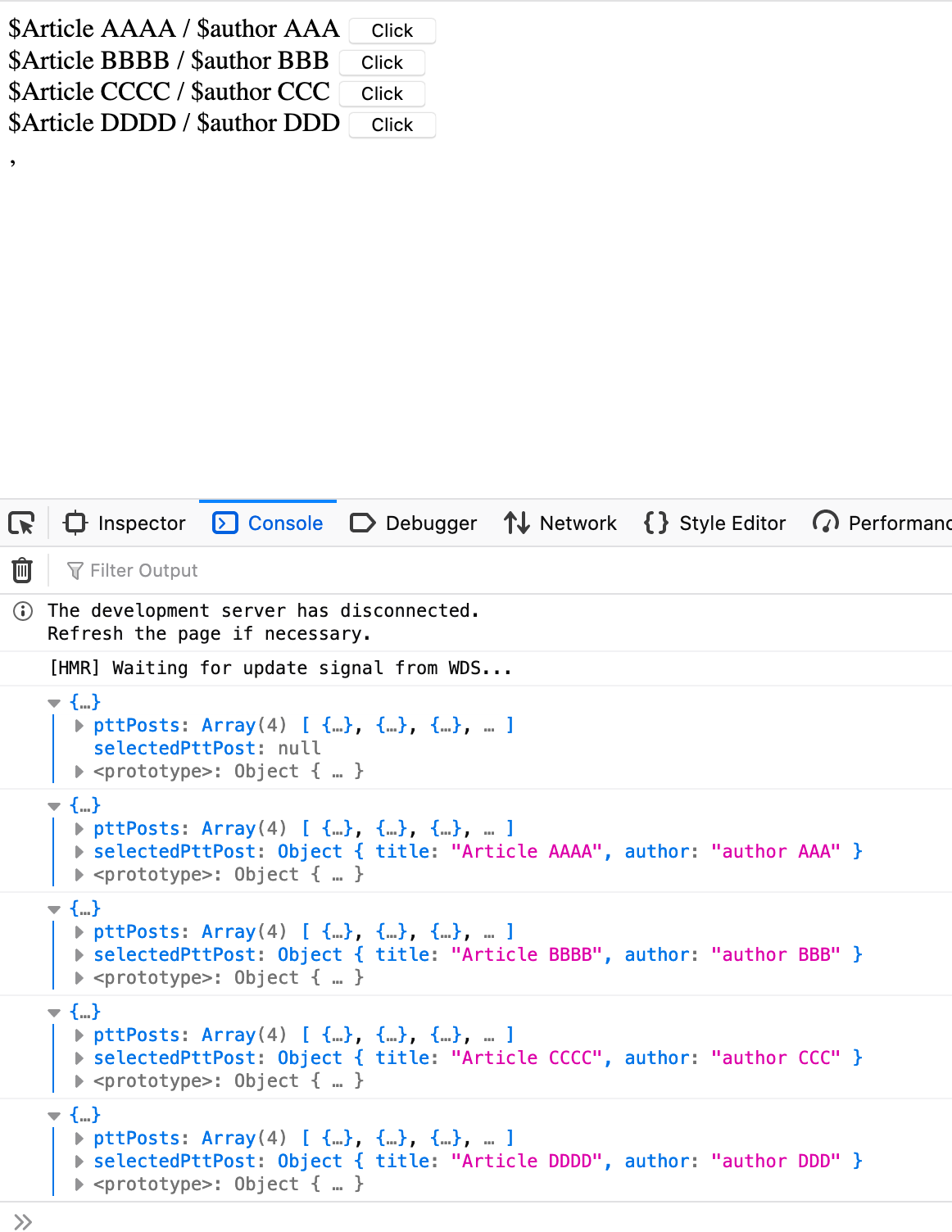 可以看到 state 裡面有文章的資訊